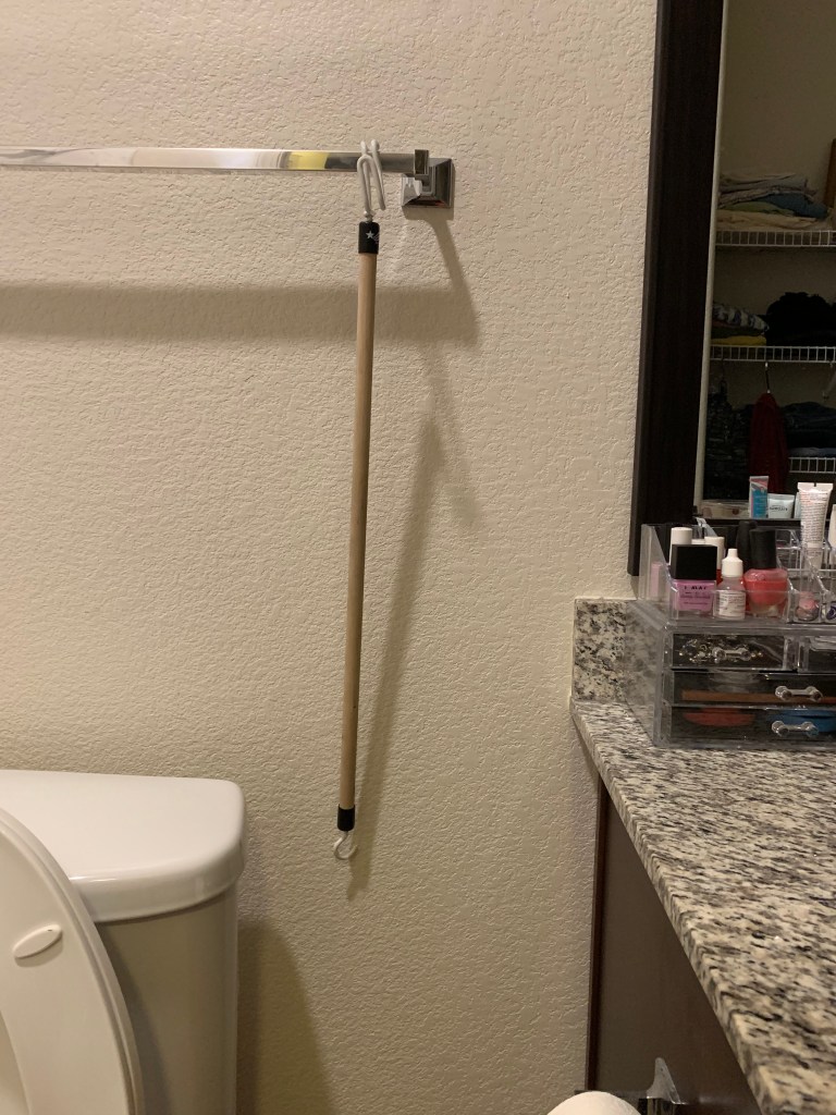 This dream reminded me of how much I appreciate my house, with things set up for me, that make my life easier. Everything is low, nothing on shelving too high, I have poking sticks everywhere that help me access things that are high or far away. My house is accessible and I love it.